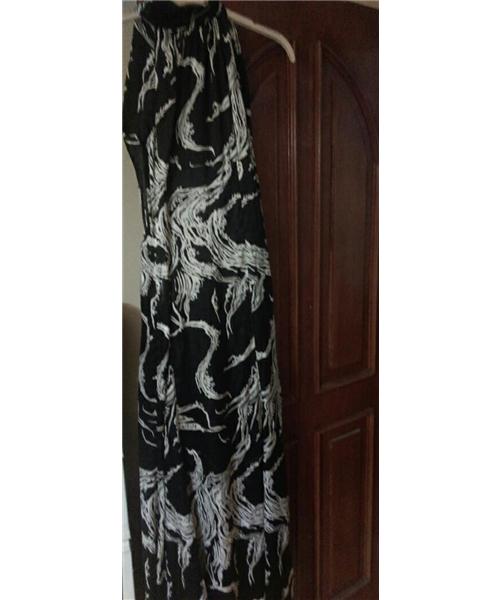 Siyah beyazin uyumu ile hazirlanmis,saten balik elbise,boyundan baglanabilen detayi ile gorulmeye deger.36/38beden (150tl.)