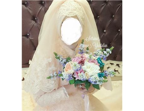 baş aksesuarı ve duvagı da beraberinde.