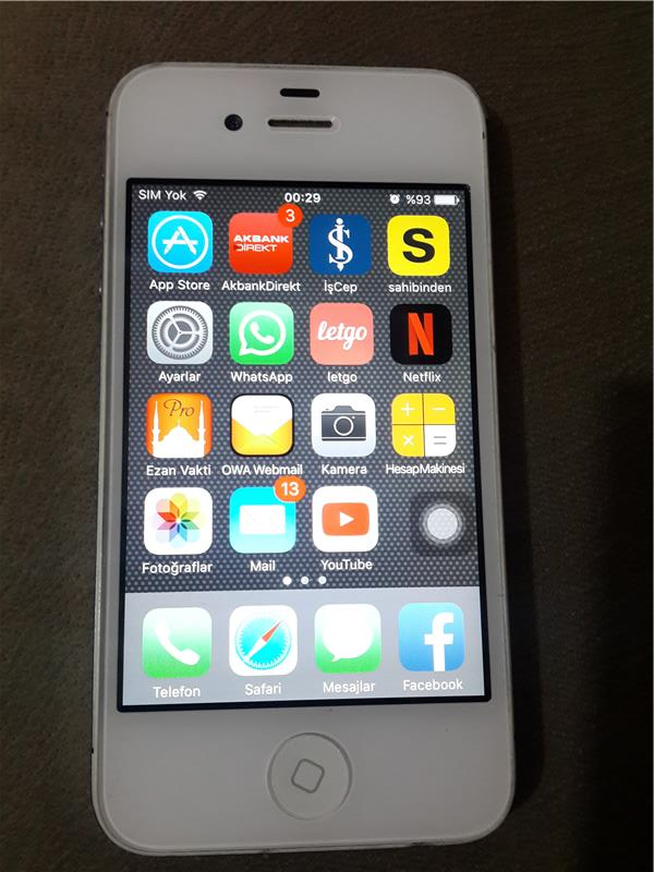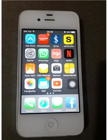 İphone 4S siri 8gb sıfırlanıp yani format atılıp teslim edilecek İcloud şifresi mevcut.