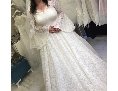 Düğünümde sadece 1 kere giyildi, herhangi bir kusuru yok. 40 bedene uygun. Arkasından ip bağlamalı, full dantel ağır bir gelinlik.