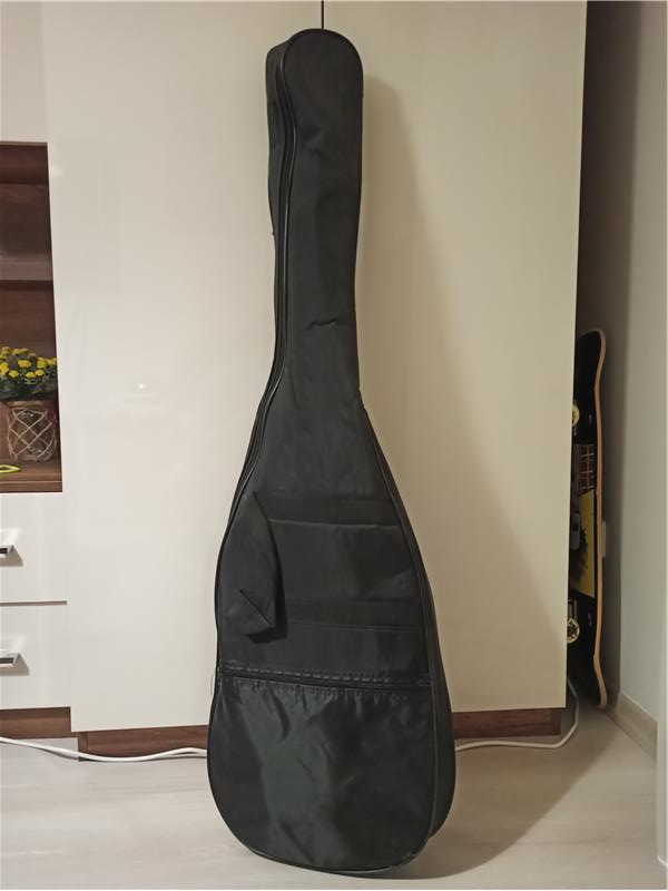 Telleri zaman kaynaklı hafif eskidi fakat pas yok sesleri bozuk değil. Yanında gitar çantası, askı, kablo ve akor cihazı vereceğim. Kablosu kaliteli ve sağlam. Çanta biraz eski ama sağlam.