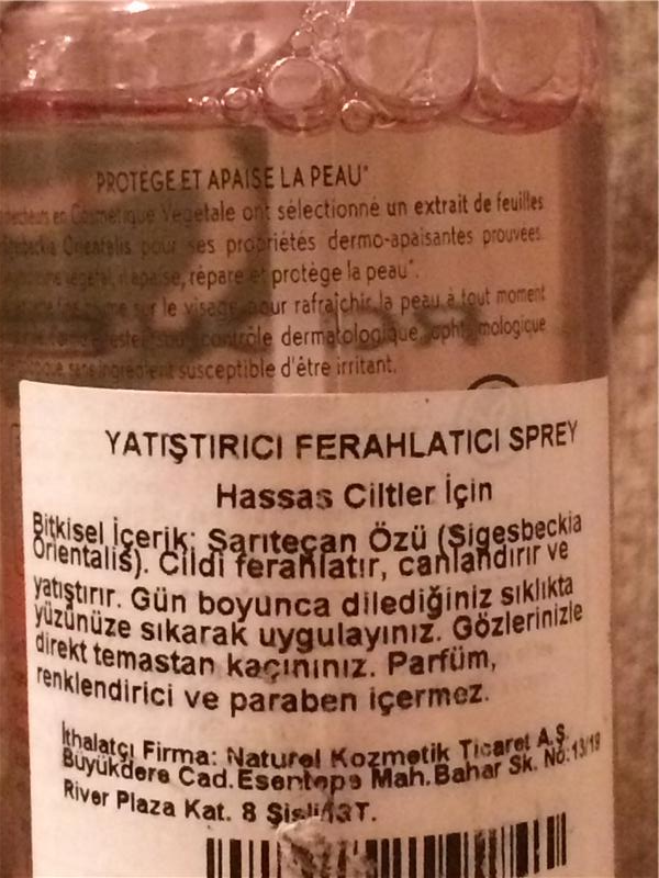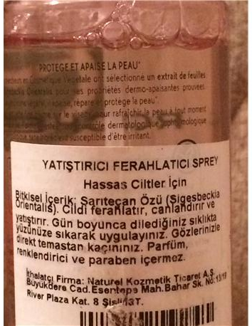 Yves Rocher özellikle hassas ciltlerin dahi rahatlıkla kullanabileceği ferahlatıcı yatıştırıcı sprey 150 ml. İki fıs sıkılmıştır sadece. Piyasa fiyatı 18-22 arasında değişim göstermekte