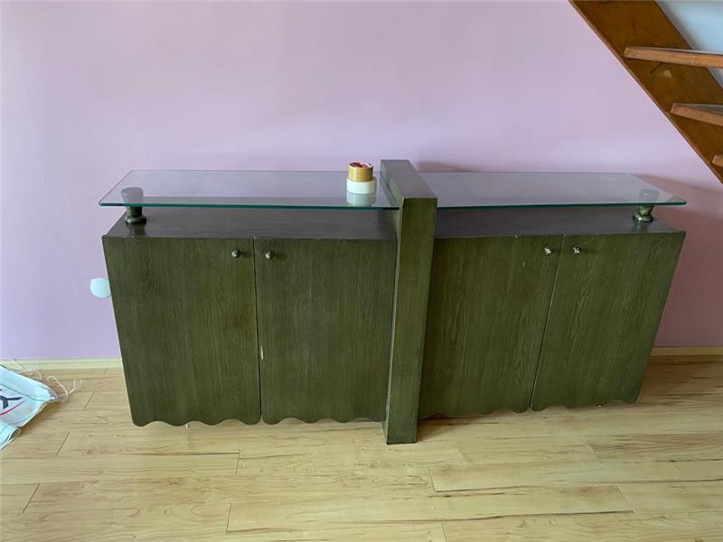 Az kullanılmış oturma gurubu , ve yemek dolabı sağlam şık nubuk deri kumaştan yapılmıştır.